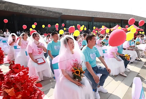 此次活動旨在通過集體婚禮的形式,倡導移風易俗,弘揚文明新風,積極響應婚俗改革的號召,推動形成全民關注、人人踐行、行之有效的婚俗改革新風尚。婚禮現場,百名新人身著統一的婚紗禮服,手挽手步入精心布置的儀式區。在綠意盎然的自然景觀中,他們仿佛成為了大自然的一部分,與周圍的植物共同見證著這份純潔而堅定的愛情。園林公益集體婚禮不僅是一場浪漫的婚禮慶典,更是一次具有深遠意義的公益活動。“植此青綠,‘園’來有你”,這句寓意深遠的主題詞不僅表達了對新人們美好未來的祝愿,也寄托了對婚俗改革、文明新風的美好期待。