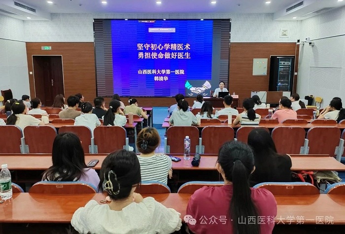 副院長韓清華以“堅守初心學(xué)精藝術(shù),勇?lián)姑龊冕t(yī)生”為題,結(jié)合自己從醫(yī)三十多年的經(jīng)歷為學(xué)員們上了一堂精彩生動的醫(yī)學(xué)人文課,寄語學(xué)員不忘醫(yī)者初心、踐行醫(yī)者使命,在三年的規(guī)培中學(xué)有所成,成長為一名合格醫(yī)生。