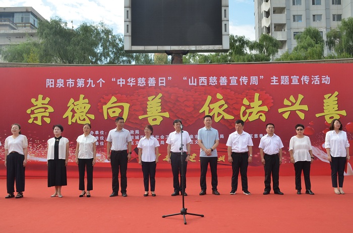 9月5日上午,陽泉市民政局以“崇德向善,依法興善”為主題在城市廣場舉辦了第九個“中華慈善日”暨第四個“山西慈善宣傳周”現場宣傳活動。市民政局黨組書記、局長樊志紅、市民政局三級調研員郗小芬、城區副區長翟瑞慶等領導出席,城區、礦區、高新區、郊區負責同志及各有關慈善組織、志愿服務隊參加宣傳活動。