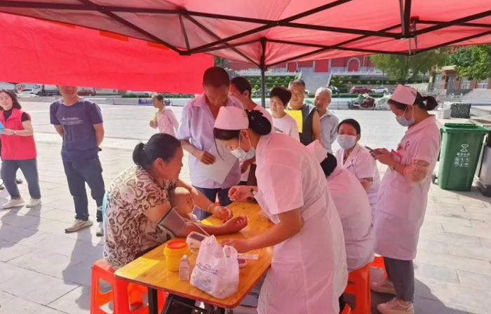 義診現場,來自陽泉市靜安醫院的醫護人員為居民免費測量血壓、測血糖,解答居民關于常見病的咨詢,并根據每位居民的身體狀況給出了針對性的健康建議,醫生們耐心細致的服務贏得了現場居民的一致好評。