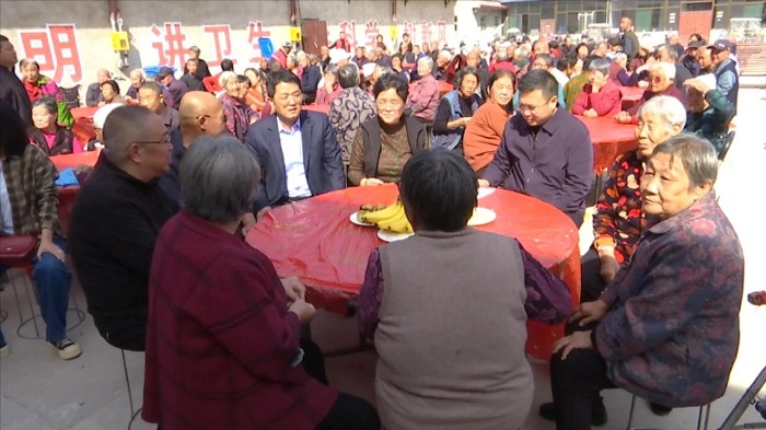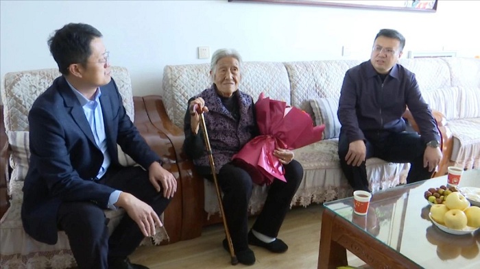 10月11日,曲沃副縣長陳卓前去看望百歲老人張桂枝、孔照祿,開展“敬老月”慰問活動。