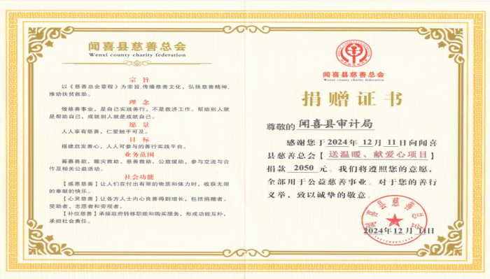 此次慈善捐款活動(dòng)不僅為需要幫助的人們送去了關(guān)愛與溫暖,也展現(xiàn)了聞喜縣審計(jì)局干部職工們良好的精神風(fēng)貌和積極向上的工作態(tài)度。未來,審計(jì)局將繼續(xù)發(fā)揚(yáng)優(yōu)良傳統(tǒng),積極投身公益事業(yè),為社會(huì)的和諧與發(fā)展貢獻(xiàn)更多力量。