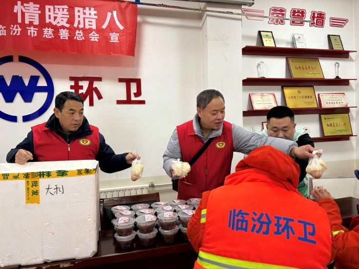 在農歷十二月初八這一傳統的臘八節里,臨汾市慈善總會舉辦了一場主題為“濃濃粥香、情暖臘八”的送粥活動。此次活動旨在通過贈送臘八粥的形式,向辛勤工作在城市一線的環衛工人表達溫暖與關愛,讓他們在寒冷的冬月里感受到一份特別的節日關懷。