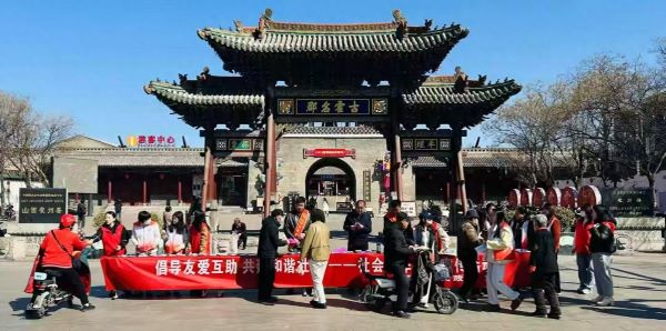 18日一早,初春乍暖,霍州民政局局長閆會波、副局長龐瑞林與轄區內的社工一道,在霍州署前開展宣傳。霍州署前設置宣傳點,懸掛橫幅、擺放展板,社工和志愿者們向過往市民發放宣傳資料。