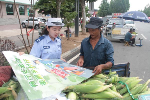 集市上,民警迅速“開攤”,將“三輪車禁止載人”“拒絕酒駕”等宣傳資料遞到群眾和攤主手中。他們化身交通安全“講解員”,耐心叮囑出行要點,從步行到駕車,注意事項講得細致入微。