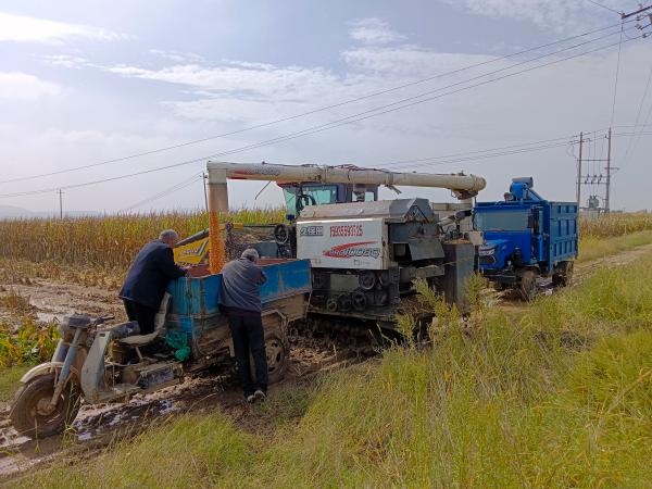針對田地濕軟、機械難以進地的問題,鎮政府緊急協調調配27臺履帶式收割機,采用“人機結合、以機為主”的方式推進搶收工作。同時,廣泛發動群眾,組織800余人次勞動力,利用降雨間歇人工搶收玉米等作物,確保能收盡收、快收快搶。為保障糧食品質,鎮內5處糧食烘干中心全部滿負荷運轉,日烘干能力達800噸,有效防止谷物霉變,全力保障秋糧“顆粒歸倉”。