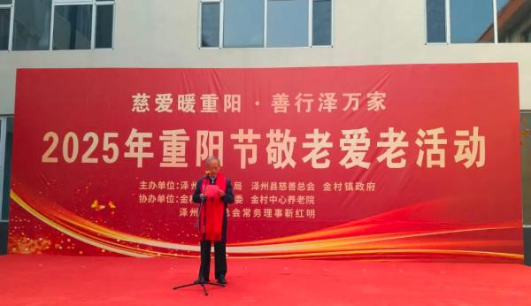 隨后,靳水生會長致辭。他代表澤州縣慈善總會向老年朋友致以節日問候,感謝金村鎮在慈善事業中的突出貢獻,并承諾縣慈善總會將繼續發揮慈善在養老保障中的補充作用,為老年人辦更多實事。